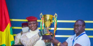 Tournoi UFOA-B : les Etalons cadets présentent leur trophée au Président...