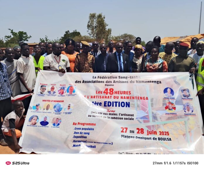 Boulsa, 29 juin 2025 (AIB)- Le Haut-commissaire de la province du Namentenga, Adama Conseiga a présidé le vendredi 27 et le samedi 28 juin 2025 à Boulsa, la 1re édition de la Fédération Song-Taaba des artisans du Namentenga (FSAN) marquée par des activités socioculturelles et sportives. Pour l’occasion, le premier responsable de la province, Adama Conseiga et le parrain de la cérémonie, André Taondyandé ont pris l’engagement de plaider pour la construction d’une maison des artisans du Namentenga.