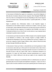 Reaction du gouvernement burkinabè suite au décès tragique de Alino Faso