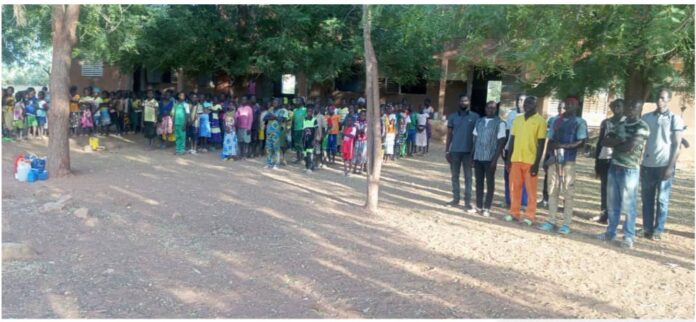 Pour marquer la présence de l’administration dans le village, le directeur de l’école, Lassina Dama, a sonné la mobilisation autour de l’école pour en faire un symbole de résilience et d’engagement patriotique.