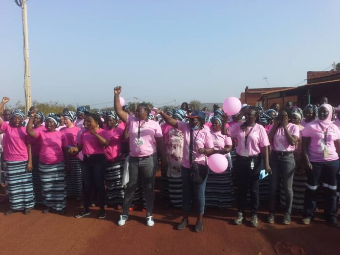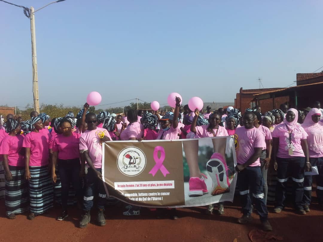 L’UFEMI a également organisé une marche symbolique d’engagement contre le cancer du sein qui a rassemblé les travailleurs de la mine et les populations locales.