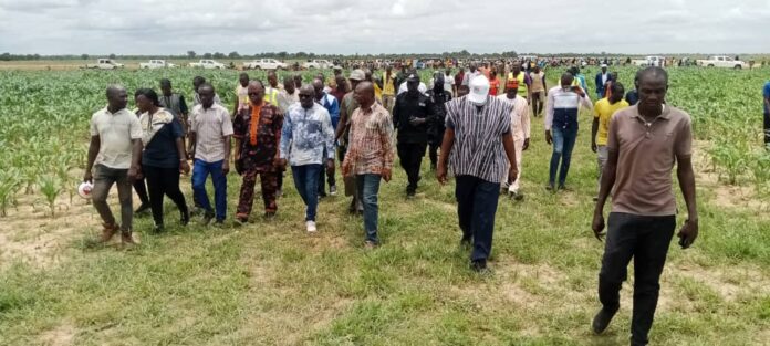 A Dourou, la délégation a pu visiter le site de 416 ha en exploitation sur une superficie de 447 ha déjà emblavés pour la circonstance.
