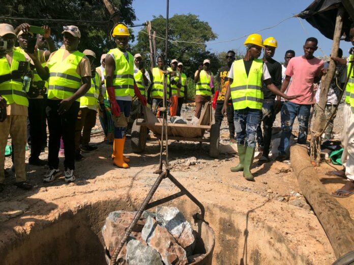 À Gnikpière, les visiteurs ont pu observer l’extraction du minerai, le concassage et le broyage à l’aide d’équipements mécaniques.